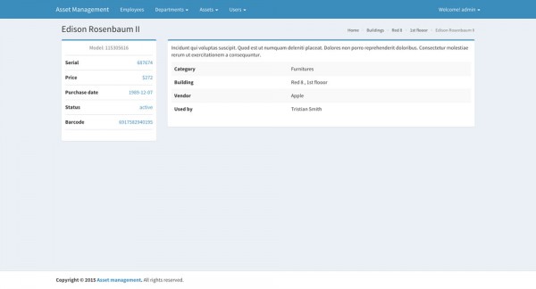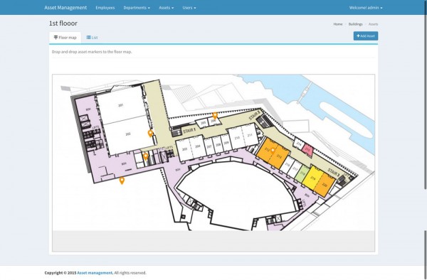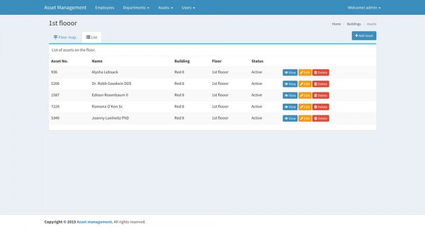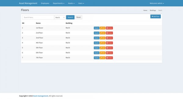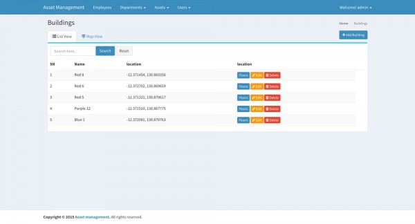 Asset management app is made with Laravel and Mysql. This project helps client to find assets on each building with floor plan. Assets has visuals of where exactly it is located with a cool feature of floor diagram.