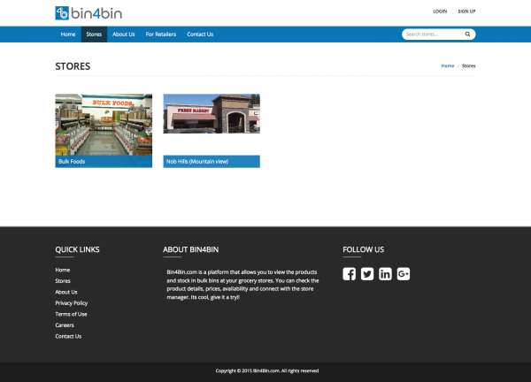 Bin4Bin.com is a platform that allows you to view the products and stock in bulk bins at your grocery stores. You can check the product details, prices, availability and connect with the store manager. Its cool, give it a try!!
